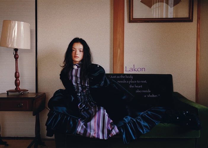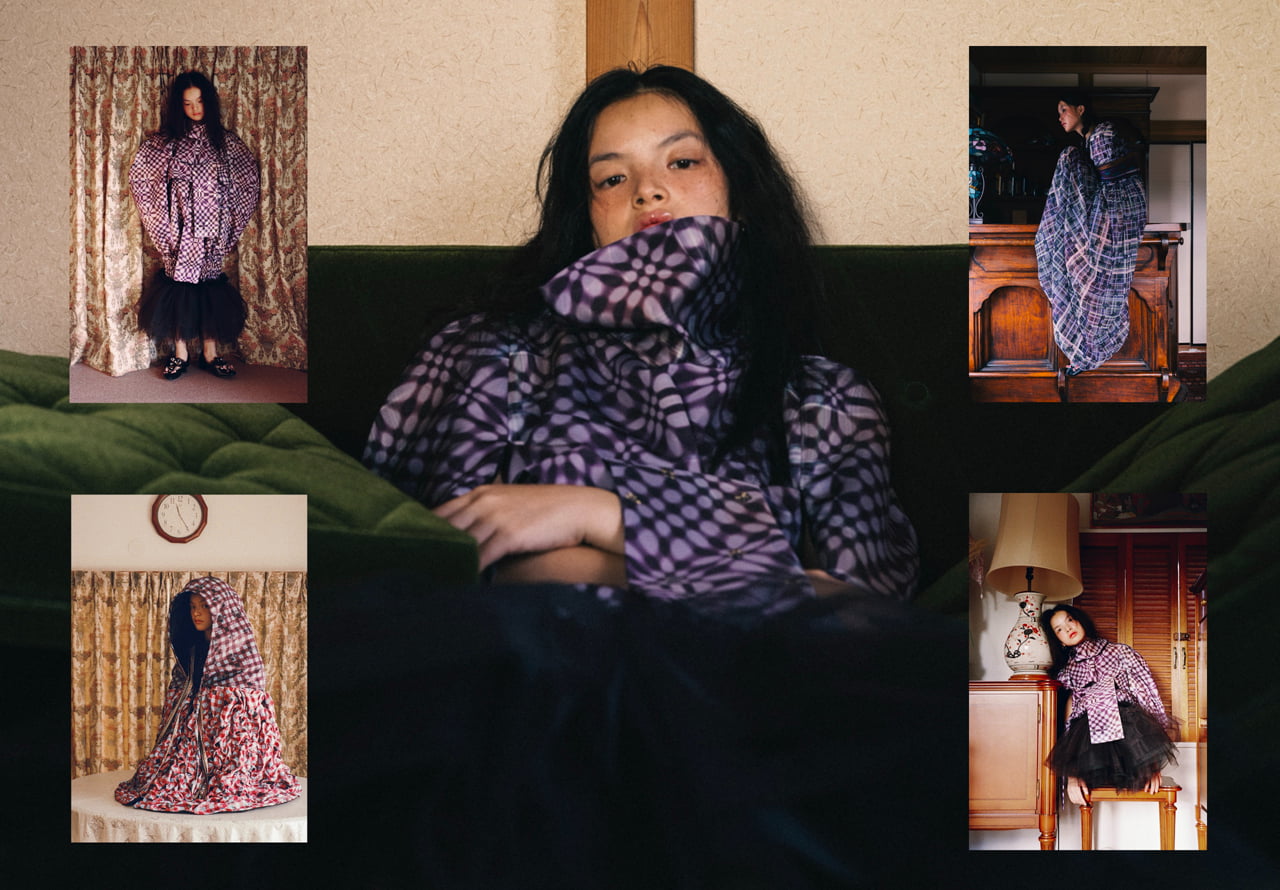 今の社会では、私たちには「家」はあっても、心が落ち着ける「居場所」がないと感じました。体が休む場所と同じように、心にも「避難所」が必要だという考えが、デザインテーマの出発点となりました。 「居場所のない心に、身にまとうことができる"シェルター"をつくる」 これが、今回のコレクションのコンセプトです。テキスタイルは、遊牧民の暮らしの風景や、自然の中で見つけた草花からインスピレーションを得て、安心感を包み込むようなイメージをオリジナル柄として制作しました。