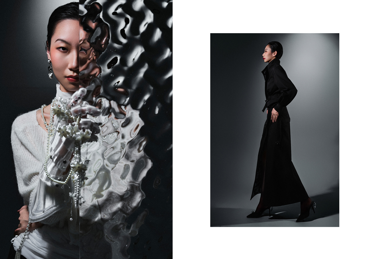 'SHE MOVED FIRST' is a fashion proposal that frees women from external gazes and social expectations, celebrating those who act from their own inner sense and intuition. It is more than a matter of style; it embodies a personal will that rises from within, and the freedom to follow it. Inspired by Domani! A Message of Love, the collection explores Anti-Gaze, portraying women not as objects to be watched , but as active agents who shape their own narratives. Within the collection, the idea of "being watched" is translated into visual form. Dot patterns—drawn from the motif of the eye—are broken down and reconstructed to reveal a different perspective. Iron-wire lines visualize the pressure of being watched, evoking both constraint and resistance. At the same time, each garment is designed to endure beyond trends, created to be cherished and lived with over time. SHE MOVED FIRST represents a quiet yet certain inner strength. This collection is a tribute to women who move forward guided by their own inner voice.
