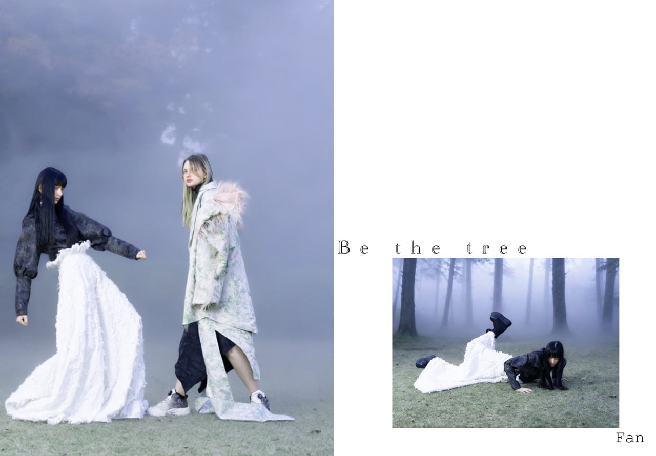 Under the theme of "Be the Tree," I explore the connection between the human inner self and the life force of nature. While people hide emotions to fit society, plants grow freely—unaffected and unapologetic. This attitude inspired a sense of individualism and quiet rebellion. I express a way of being that follows inner will rather than assigned roles. Voluminous patterns create space between body and garment, symbolizing an unpruned, freely growing form. Strong shoulders and sleeves convey vitality, while asymmetry represents resistance and breaking away from norms.