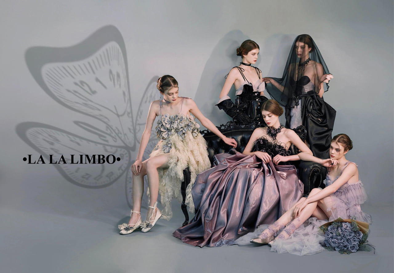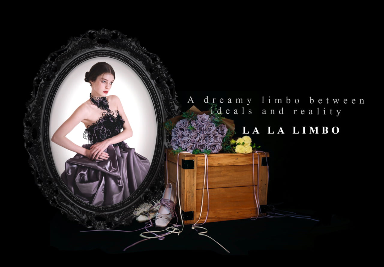 "La La Limbo"(ララリンボ)は、理想と現実、夢と愛の間で揺れ動く"葛藤"をテーマにしたウェディングドレスコレクション。 ねじれや重なりのある造形で心の揺れを表現し、時計のモチーフやリボンのディテールによって時間と距離の象徴を描く。 「永遠の愛」を胸に抱きつつ、「今、この瞬間の気持ちに正直でいること」の美しさを見つめる。La La Limboは、そんな"揺らぎの中の美しさ"を纏う、新しいウェディングのかたちを描く。
